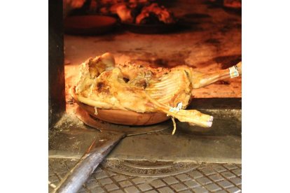 Verónica y José Manuel, del Asador San Lorenzo, muestran sus lechazos. SANTI OTERO