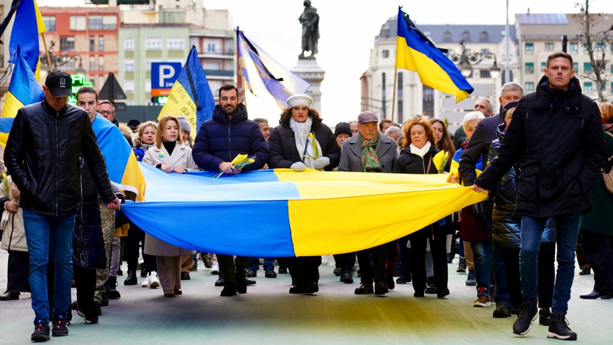 “Cada vez estamos peor y Ucrania tiene menos aguante, pero no nos queda otra que tener fuerzas, porque no nos podemos rendir” , aseguró este sábado la presidenta de la Asociación Amigos Leoneses Ucranianos Damnificados, Oresta Modla, al tiempo que pidió “ayuda y apoyo, sobre todo militar, porque mueren muchos militares y estamos cada vez más escasos de gente” . Así lo señaló Modla minutos antes de iniciarse la manifestación convocada por Aalud dos años después del inicio de la invasión rusa a Ucrania, en la que más de un centenar de personas salieron a la calle en León para “agradecer todo el apoyo y ayuda” recibidos en todo este tiempo y dejar claro que “aún así no es suficiente”.